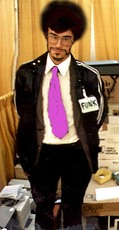 A couple of months ago I revealed a photo of me at the height of nerdosity in 1985. Now, between sets at our performance at the Pan Pacific Hotel over the weekend, one of the guitarists in my band, Adam, commandeered my PowerBook and took to that picture with Photoshop. He turned this into this.