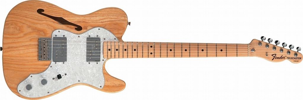 Right next to it in a big display of various Telecasters was a semi-hollowbody '72 Tele Thinline reissue (site, reviews), in a natural wood finish with two humbuckers. Like its neighbour, it was made in Mexico, had the three-bolt neck, and felt wonderful despite that—but ran at least twice my budget. Both the Custom and Thinline took me back to the late '80s or early '90s, when my friend (and then-roommate) Alistair borrowed a (genuine '70s?) Tele Custom from his friend Spencer for a few days, before buying himself a Stratocaster. The Custom had been in the back of my mind ever since as a good guitar for me.