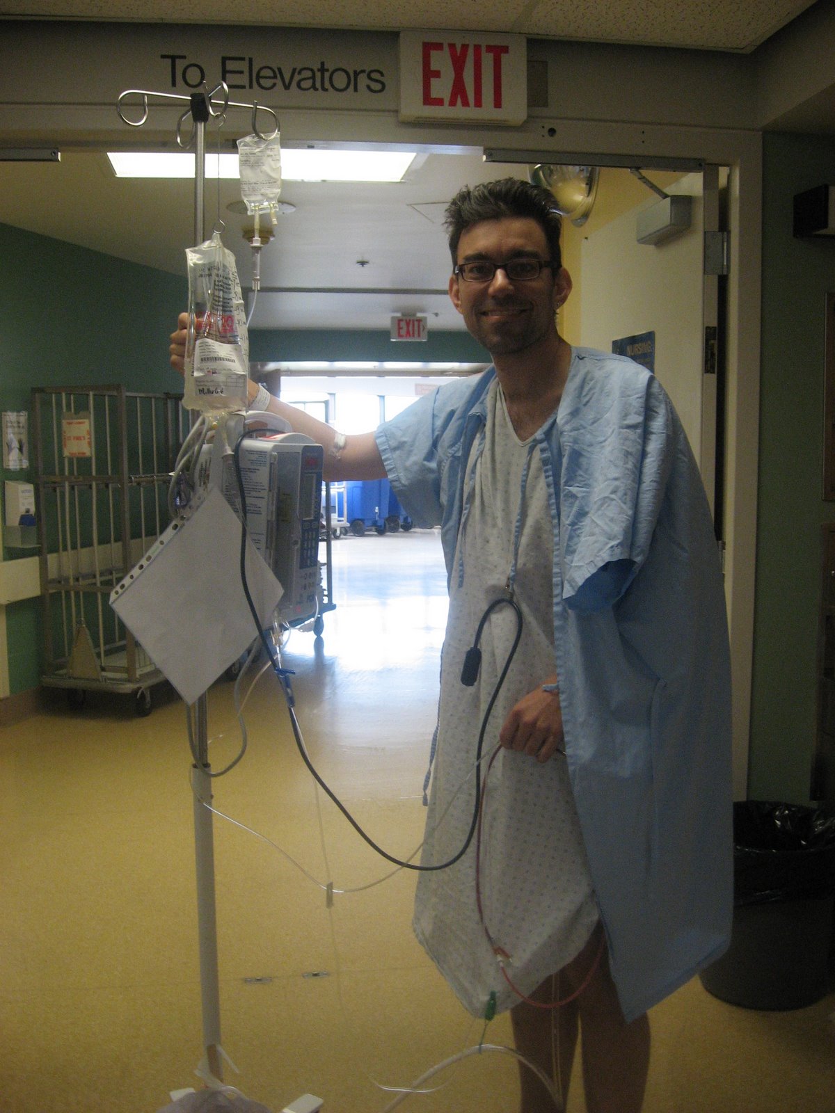 My family (especially my wife and parents) and friends have been unbelievably great, as have the hospital staff. My friend Simon is also in the same hospital, five floors down, following heart surgery, so we're continuing to be PKBF (painkiller buddies forever), although now the painkillers consist mostly of Tylenol and coffee. He's using the computer next to this one right now.